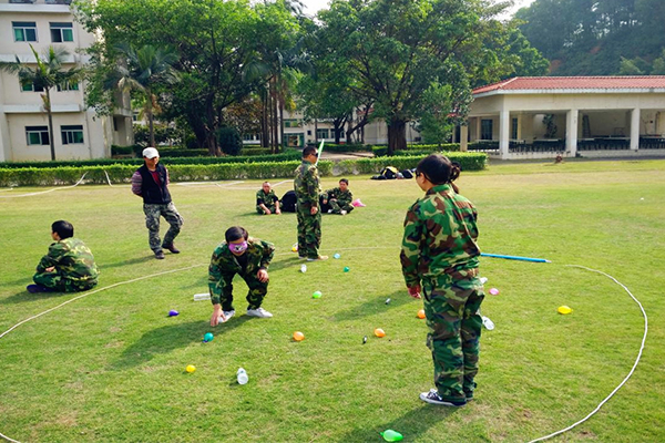 司令觀察戰(zhàn)場,用手勢和動作發(fā)出命令,借用參謀長的口傳達(dá)命令,士兵聞聲執(zhí)行。作戰(zhàn)武器為水彈(裝水的汽球),還有炸彈(礦泉水