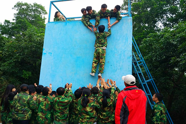 時間。大家一致推選營銷副總擔(dān)任總司令,并制定出在1個小時內(nèi)完成的目標(biāo)。項(xiàng)目是要求每位成員都要翻越4米多高的光滑墻面,且不能